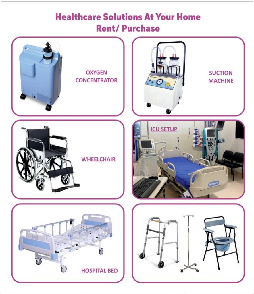हम घर पर सभी प्रकार के medical equipment उपलब्ध कराते हैं: